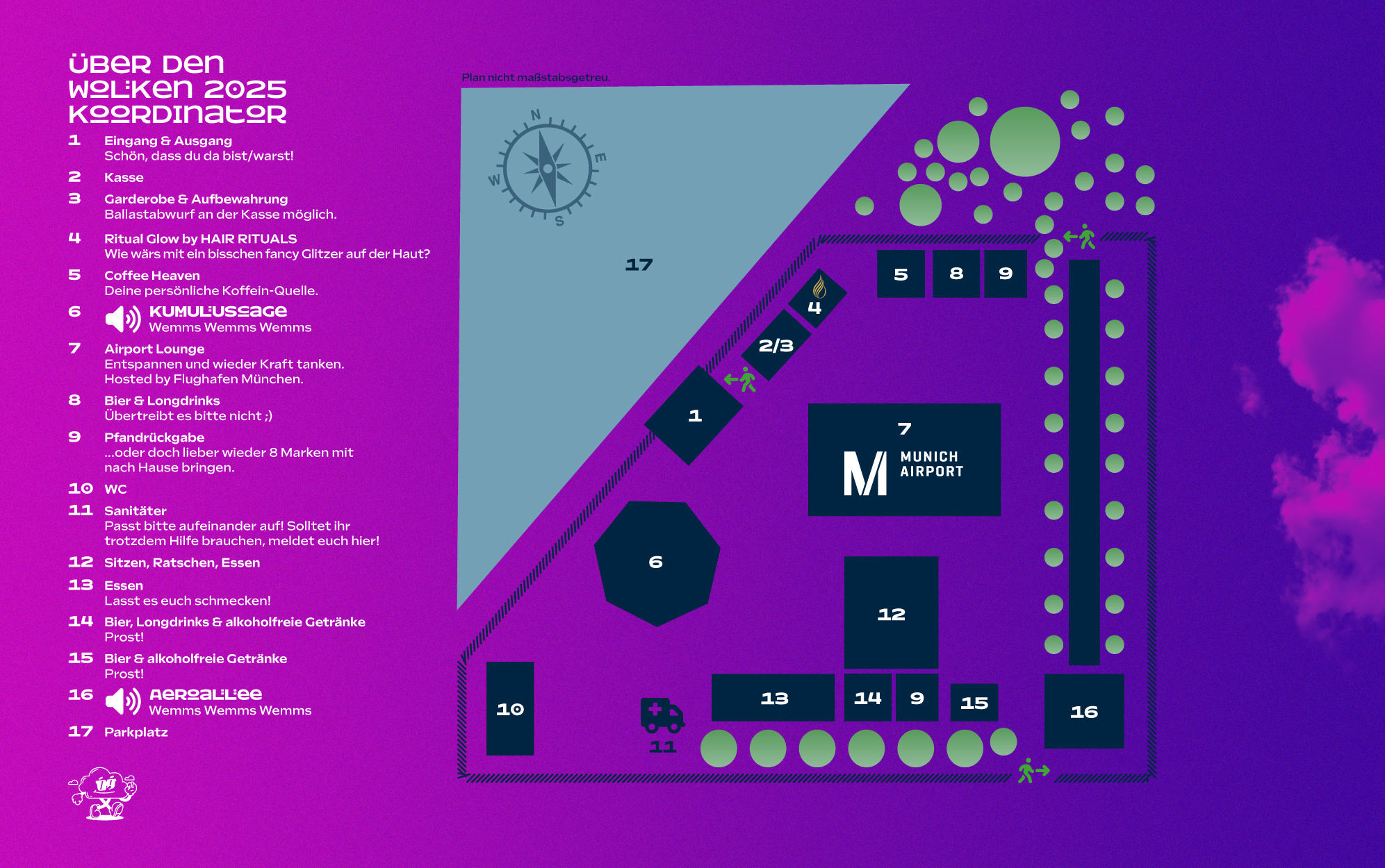 Wir sind kein Unternehmen, sondern ein Haufen musikverliebter Menschen, die ihre Abende und Wochenenden dafür opfern, das Über den Wolken Festival auf die Beine zu stellen. Alles ehrenamtlich, ohne Gagen, ohne kommerzielle Hintergedanken – einfach aus Leidenschaft. Entstanden aus der Sehnsucht nach Musik und Gemeinschaft, ist unser Festival mittlerweile zu einem Herzensprojekt von über 50 Ehrenamtlichen geworden. Wir lieben es, regionale Artists eine Bühne zu geben, Tickets bezahlbar zu halten und einen Tag lang einen Ort zu schaffen, an dem alle gleich sind. Für uns zählt nur eins: die Musik – und die Menschen, die sie feiern. Alles klein, aber fein.